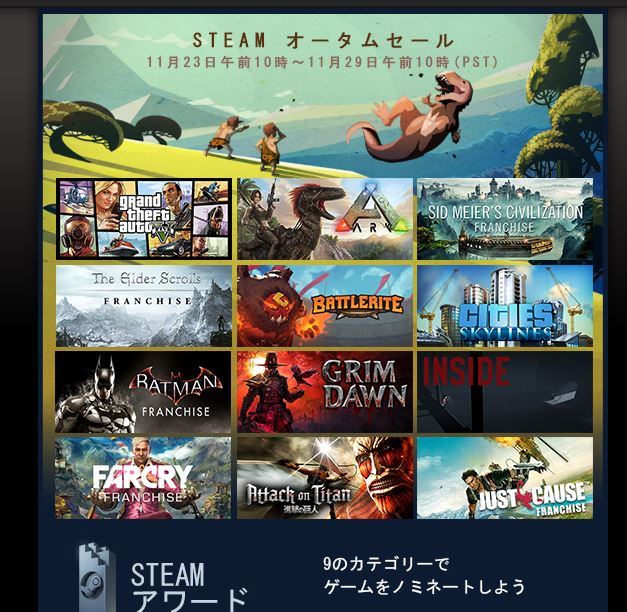 ゲーム好きのひとならご存じかと思うSteamで、人気タイトルも含めて